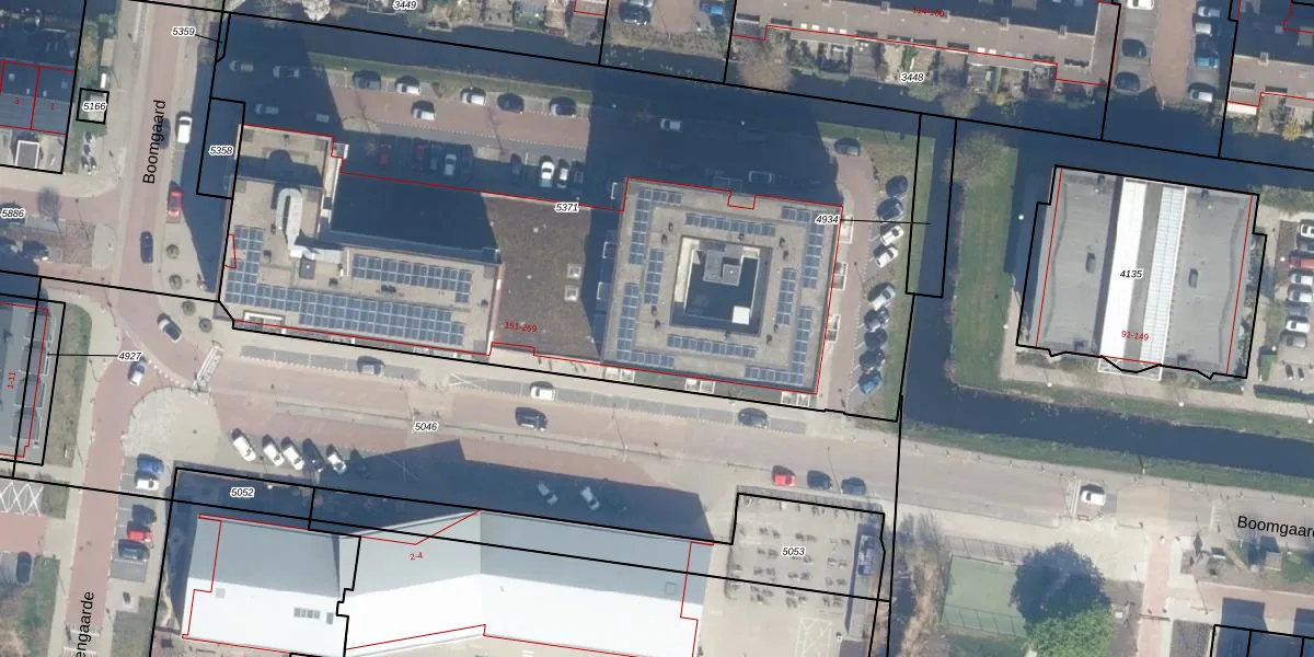 Het perceel waarop Boomgaard 199 staat heeft een oppervlakte van 4960 m². Dit is een zeer groot perceel. De perceeloppervlakte wordt geregistreerd door het Kadaster. Gedetailleerde informatie over de maten van dit perceel kunt u vinden in het rapport Kadastrale kaart met maatvoering van Boomgaard 199.