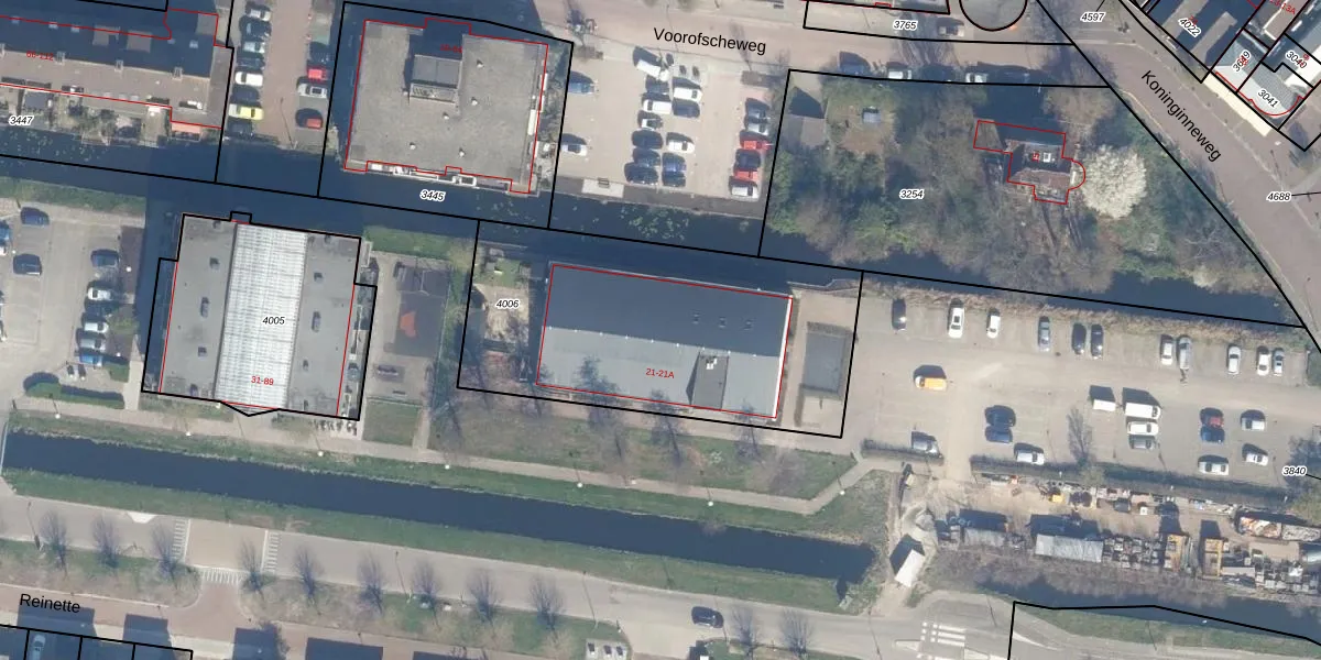 Het adres ligt op het perceel BKP00-D-4006, dat zich in de kadastrale gemeente Boskoop bevindt. Het perceel is 1500 m² groot. Dat is kleiner dan de gemiddelde perceeloppervlakte in Boskoop, dat op 1879,36 m² ligt. De grootste perceeloppervlakte in de kadastrale gemeente is 20,7 ha. De kleinste oppervlakte bedraagt 0 m². Er zijn 2 adressen aanwezig op het perceel. De huidige grenzen van het perceel zijn digitaal in de Basisregistratie Kadaster (BRK) geregistreerd op 12-02-2007.
