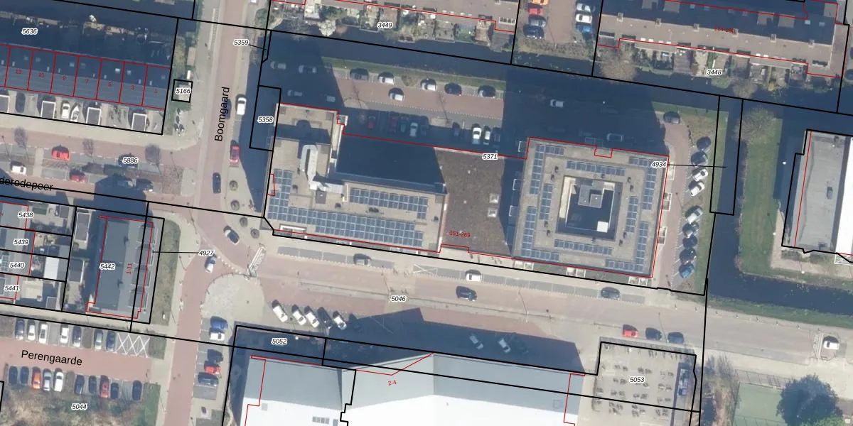 Het perceel waarop het adres ligt is BKP00-D-5371. De afkorting 'BKP00' staat voor kadastrale gemeente Boskoop. De oppervlakte van het perceel is 4960 m². Dat is groter dan gemiddeld in Boskoop, waar de gemiddelde perceeloppervlakte op 1879,36 m² ligt. Het grootste perceel in de kadastrale gemeente is 20,7 ha. Het kleinste perceel heeft een oppervlakte van 0 m². Er zijn 83 adressen aanwezig op het perceel. De huidige grenzen van het perceel zijn digitaal in de Basisregistratie Kadaster (BRK) geregistreerd op 28-06-2017.