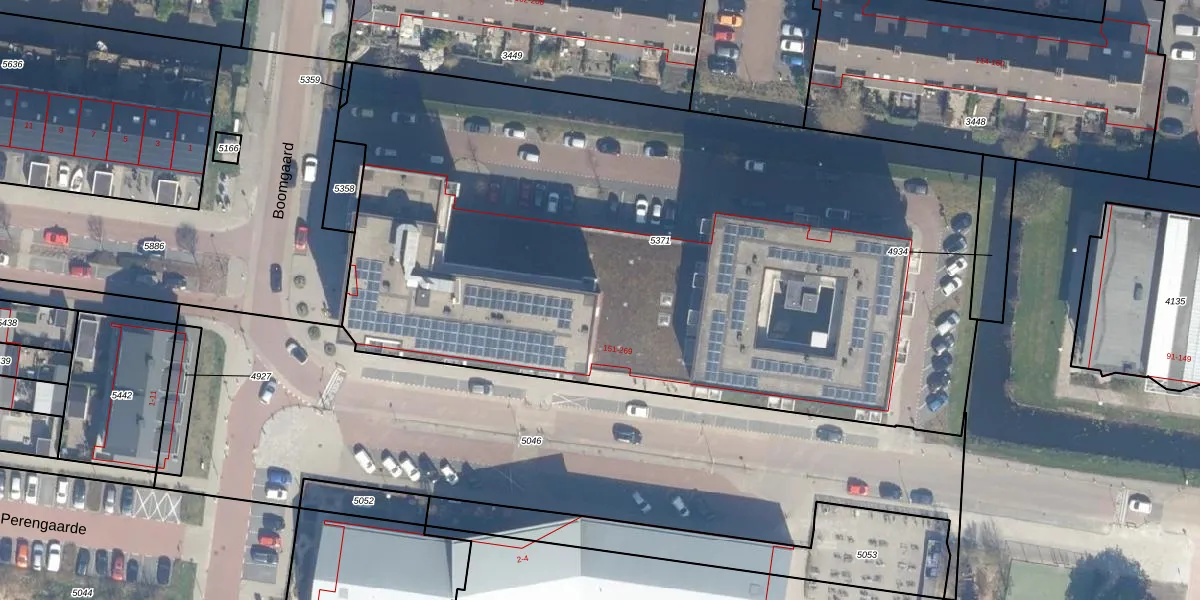 Het perceel waarop Boomgaard 215-E staat heeft een oppervlakte van 4960 m². Dit is een zeer groot perceel. De perceeloppervlakte wordt geregistreerd door het Kadaster. Gedetailleerde informatie over de maten van dit perceel kunt u vinden in het rapport Kadastrale kaart met maatvoering van Boomgaard 215-E.