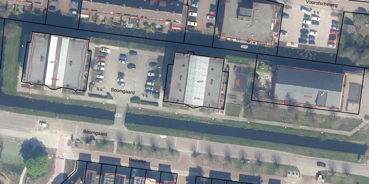 Het perceel waarop Boomgaard 47 staat heeft een oppervlakte van 870 m². Dit is een groot perceel. De perceeloppervlakte wordt geregistreerd door het Kadaster. Gedetailleerde informatie over de maten van dit perceel kunt u vinden in het rapport Kadastrale kaart met maatvoering van Boomgaard 47.
