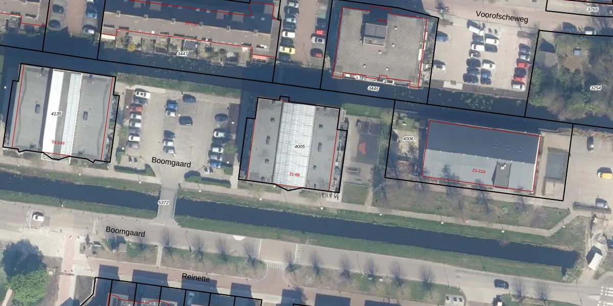Het adres ligt op het perceel BKP00-D-4005, dat zich in de kadastrale gemeente Boskoop bevindt. De gemiddelde perceelgrootte in Boskoop is 1879,36 m². Dit perceel is kleiner: de perceeloppervlakte bedraagt 870 m². Het kleinste perceel in de kadastrale gemeente is 0 m² groot. De grootste perceeloppervlakte is 20,7 ha. Er zijn 30 adressen aanwezig op het perceel. De huidige grenzen van het perceel zijn digitaal in de Basisregistratie Kadaster (BRK) geregistreerd op 03-08-2001.