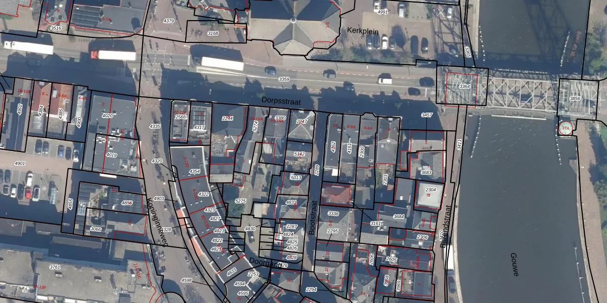 Het adres ligt op het perceel BKP00-A-5142, dat zich in de kadastrale gemeente Boskoop bevindt. Het perceel is kleiner dan gemiddeld in Boskoop. Het perceel is 88 m² groot, terwijl het gemiddelde ligt op 1882,49 m². De grootste perceeloppervlakte in de kadastrale gemeente is 20,7 ha. De kleinste oppervlakte bedraagt 0 m². Dit is het enige adres dat aanwezig is op het perceel. De huidige grenzen van het perceel zijn digitaal in de Basisregistratie Kadaster (BRK) geregistreerd op 07-04-2010.