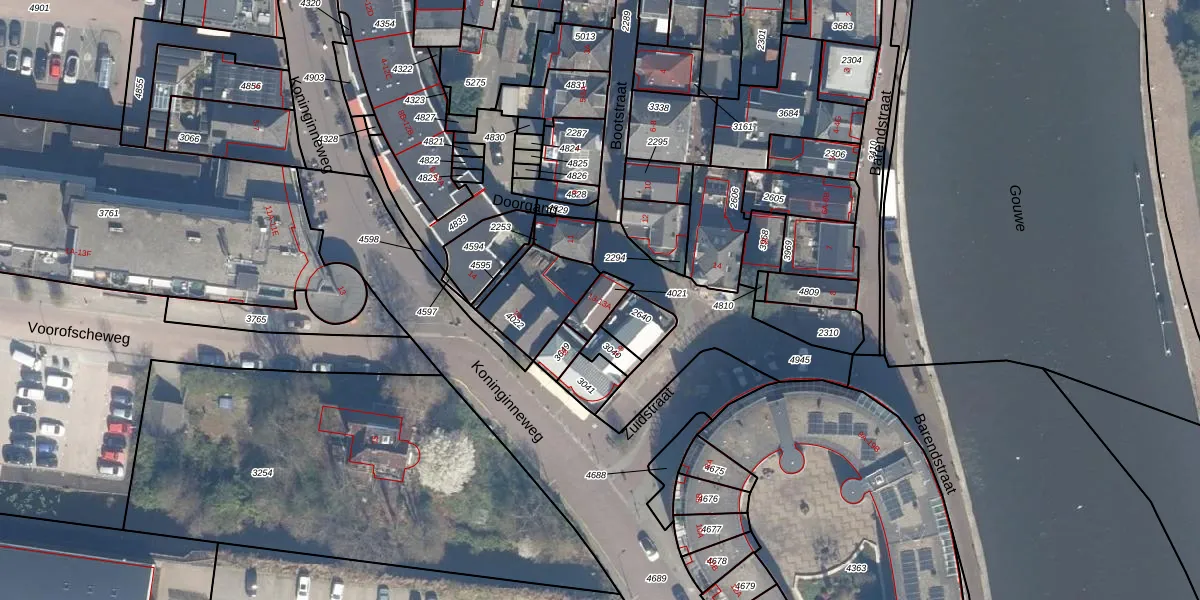 Het perceel waarop het adres ligt is BKP00-A-4021. De afkorting 'BKP00' staat voor kadastrale gemeente Boskoop. Het perceel is kleiner dan gemiddeld in Boskoop. Het perceel is 68 m² groot, terwijl het gemiddelde ligt op 1882,49 m². Het grootste perceel in de kadastrale gemeente is 20,7 ha. Het kleinste perceel heeft een oppervlakte van 0 m². Er zijn 2 adressen aanwezig op het perceel. De laatste wijziging in het de Basisregistratie Kadaster (BRK) was op 03-08-2001.