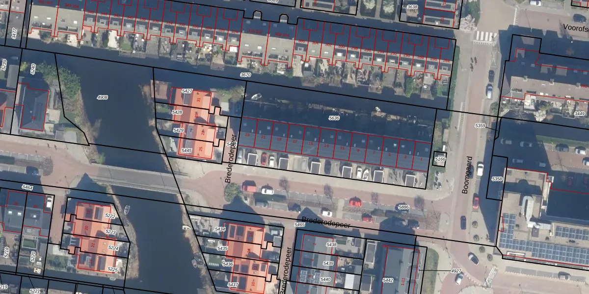 Brederodepeer 17 is gelegen op kadastraal perceel BKP00D5636. Deze kadastrale aanduiding is uniek en wordt gebruikt door het Kadaster om eigendomsrechten en andere zakelijke rechten vast te leggen. Het perceel maakt onderdeel uit van de kadastrale gemeente Boskoop.