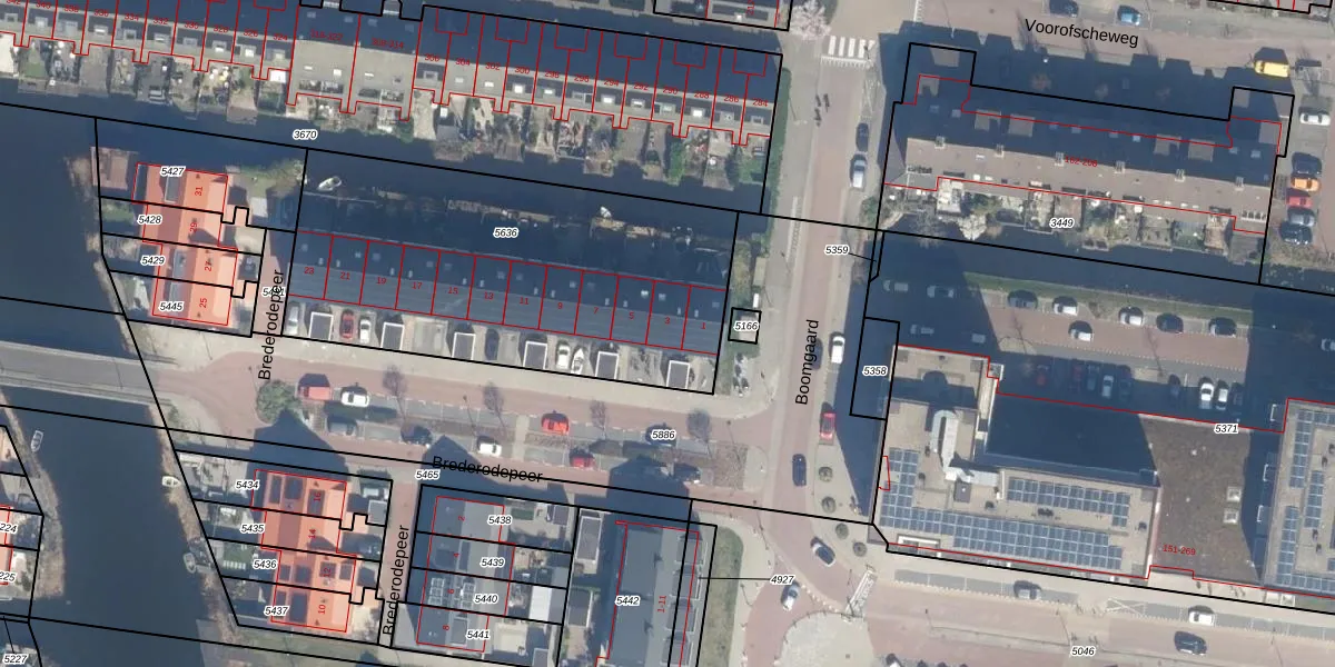 Brederodepeer 3 is gelegen op kadastraal perceel BKP00D5636. Deze kadastrale aanduiding is uniek en wordt gebruikt door het Kadaster om eigendomsrechten en andere zakelijke rechten vast te leggen. Het perceel maakt onderdeel uit van de kadastrale gemeente Boskoop.