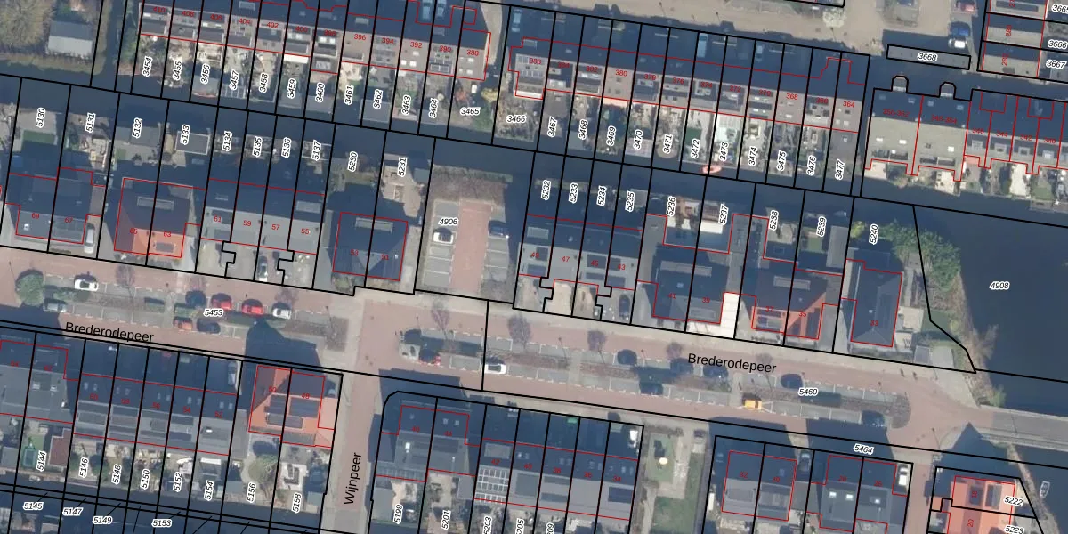Brederodepeer 49 is gelegen op kadastraal perceel BKP00D5232. Deze kadastrale aanduiding is uniek en wordt gebruikt door het Kadaster om eigendomsrechten en andere zakelijke rechten vast te leggen. Het perceel maakt onderdeel uit van de kadastrale gemeente Boskoop.