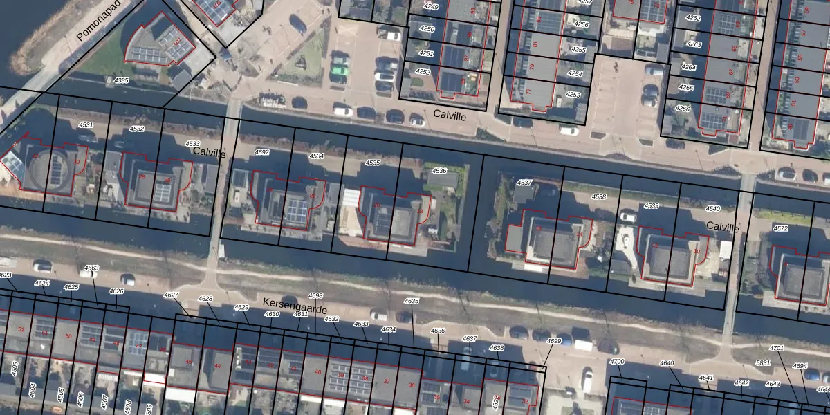 Het perceel waarop Calville 18 staat heeft een oppervlakte van 560 m². Dit is een groot perceel. De perceeloppervlakte wordt geregistreerd door het Kadaster. Gedetailleerde informatie over de maten van dit perceel kunt u vinden in het rapport Kadastrale kaart met maatvoering van Calville 18.
