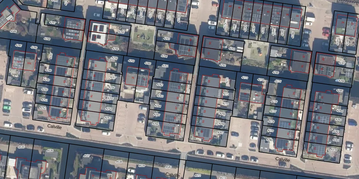 Het perceel waarop Calville 63 staat heeft een oppervlakte van 124 m². Dit is een middelgroot perceel. De perceeloppervlakte wordt geregistreerd door het Kadaster. Gedetailleerde informatie over de maten van dit perceel kunt u vinden in het rapport Kadastrale kaart met maatvoering van Calville 63.