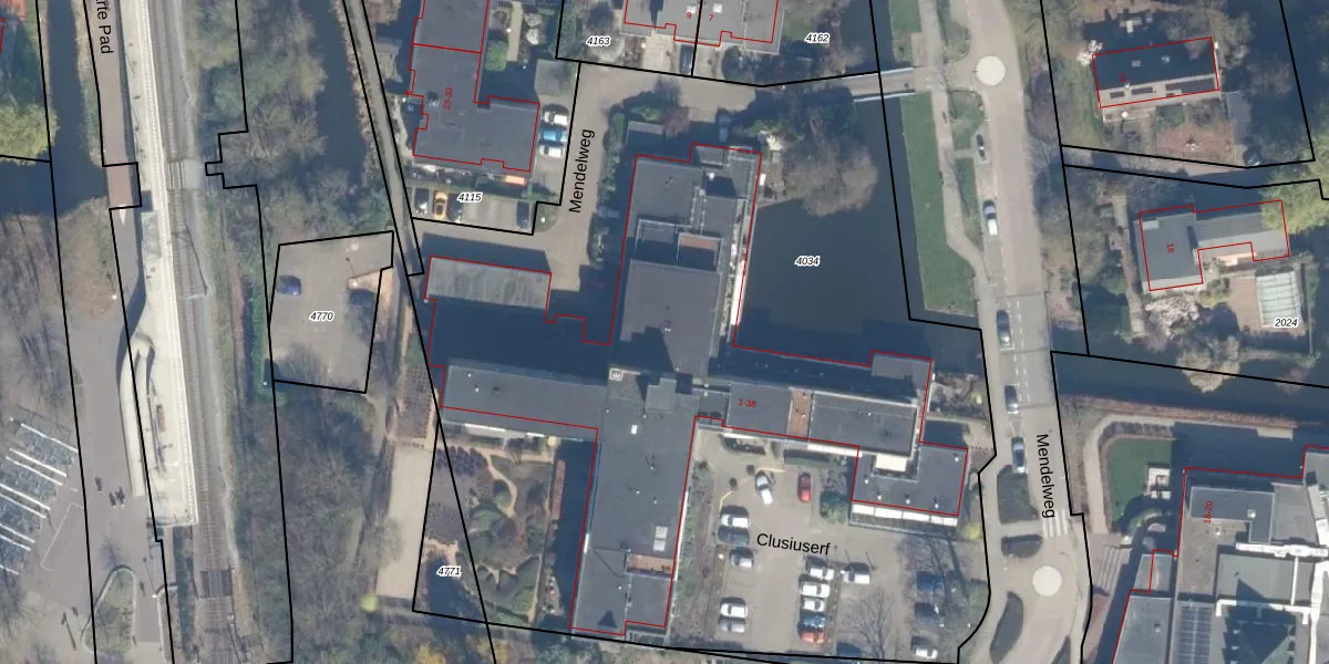 Het perceel waarop Clusiuserf 34 staat heeft een oppervlakte van 6102 m². Dit is een zeer groot perceel. De perceeloppervlakte wordt geregistreerd door het Kadaster. Gedetailleerde informatie over de maten van dit perceel kunt u vinden in het rapport Kadastrale kaart met maatvoering van Clusiuserf 34.