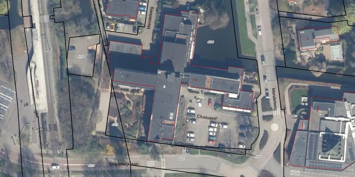 Het perceel waarop Clusiuserf 6 staat heeft een oppervlakte van 6102 m². Dit is een zeer groot perceel. De perceeloppervlakte wordt geregistreerd door het Kadaster. Gedetailleerde informatie over de maten van dit perceel kunt u vinden in het rapport Kadastrale kaart met maatvoering van Clusiuserf 6.