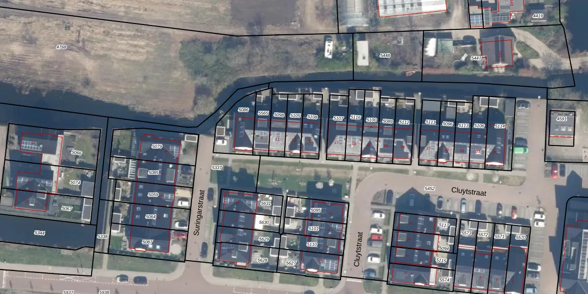 Cluytstraat 13 is gelegen op kadastraal perceel BKP00D5105. Deze kadastrale aanduiding is uniek en wordt gebruikt door het Kadaster om eigendomsrechten en andere zakelijke rechten vast te leggen. Het perceel maakt onderdeel uit van de kadastrale gemeente Boskoop.