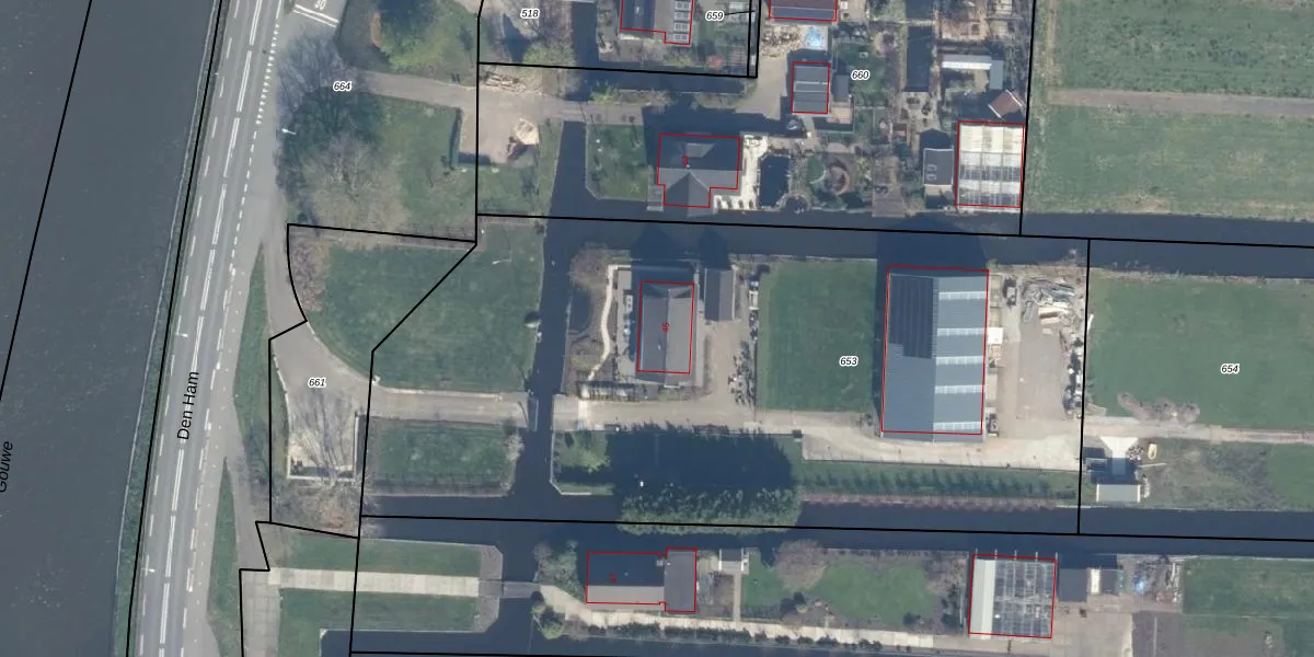 Den Ham 45 is gelegen op kadastraal perceel BKP00C653. Deze kadastrale aanduiding is uniek en wordt gebruikt door het Kadaster om eigendomsrechten en andere zakelijke rechten vast te leggen. Het perceel maakt onderdeel uit van de kadastrale gemeente Boskoop.