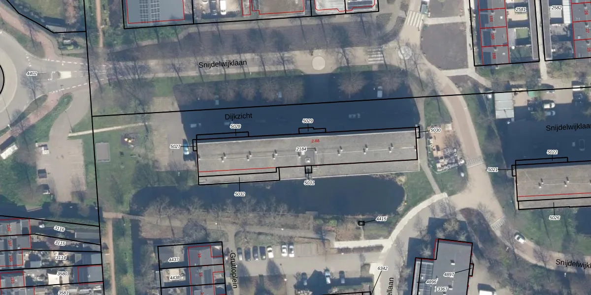 Dijkzicht 16 is gelegen op kadastraal perceel BKP00D2184. Deze kadastrale aanduiding is uniek en wordt gebruikt door het Kadaster om eigendomsrechten en andere zakelijke rechten vast te leggen. Het perceel maakt onderdeel uit van de kadastrale gemeente Boskoop.