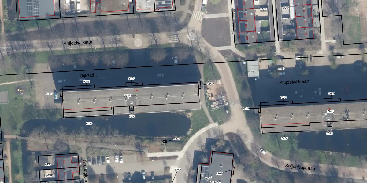 Dijkzicht 24 is gelegen op kadastraal perceel BKP00D2184. Deze kadastrale aanduiding is uniek en wordt gebruikt door het Kadaster om eigendomsrechten en andere zakelijke rechten vast te leggen. Het perceel maakt onderdeel uit van de kadastrale gemeente Boskoop.