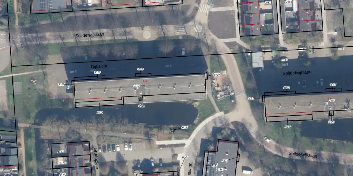 Dijkzicht 54 is gelegen op kadastraal perceel BKP00D2184. Deze kadastrale aanduiding is uniek en wordt gebruikt door het Kadaster om eigendomsrechten en andere zakelijke rechten vast te leggen. Het perceel maakt onderdeel uit van de kadastrale gemeente Boskoop.