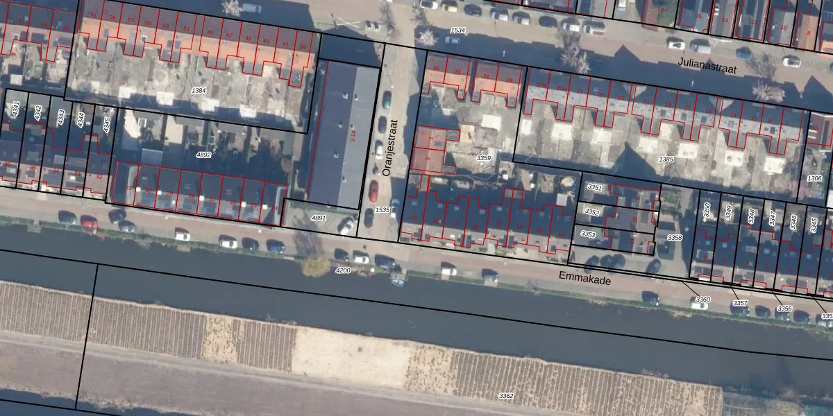 Het perceel waarop Emmakade 19 staat heeft een oppervlakte van 1500 m². Dit is een zeer groot perceel. De perceeloppervlakte wordt geregistreerd door het Kadaster. Gedetailleerde informatie over de maten van dit perceel kunt u vinden in het rapport Kadastrale kaart met maatvoering van Emmakade 19.