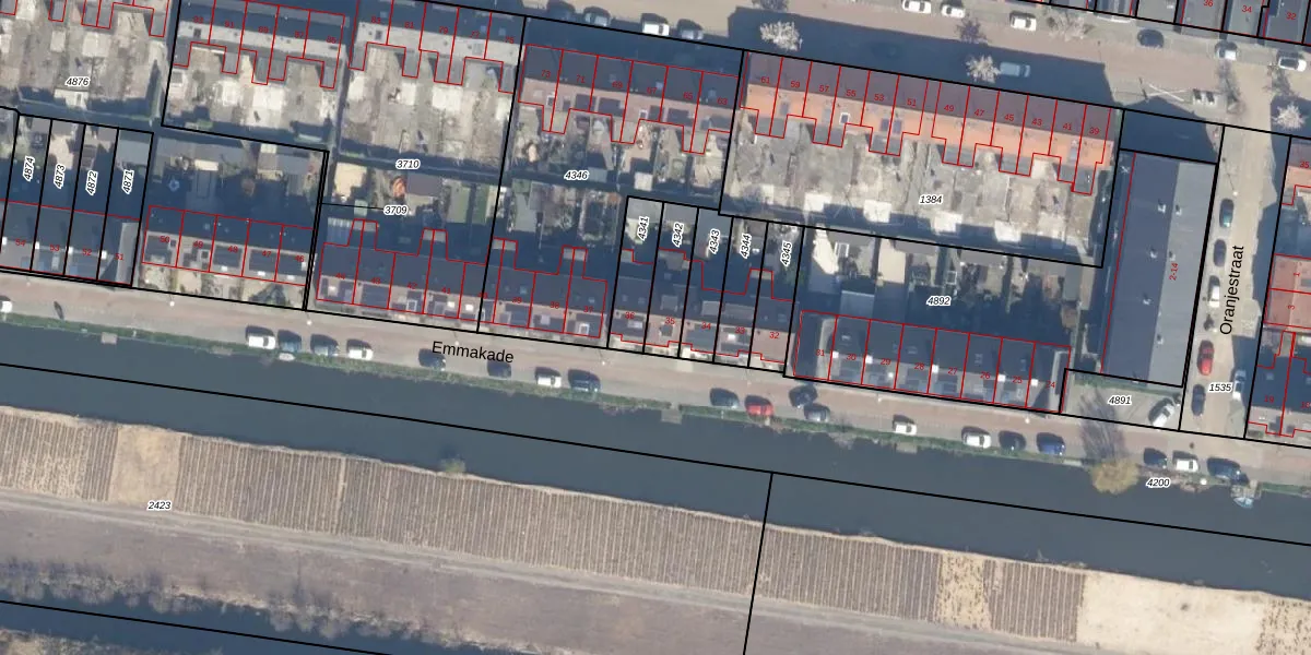 Het perceel waarop Emmakade 35 staat heeft een oppervlakte van 127 m². Dit is een middelgroot perceel. De perceeloppervlakte wordt geregistreerd door het Kadaster. Gedetailleerde informatie over de maten van dit perceel kunt u vinden in het rapport Kadastrale kaart met maatvoering van Emmakade 35.
