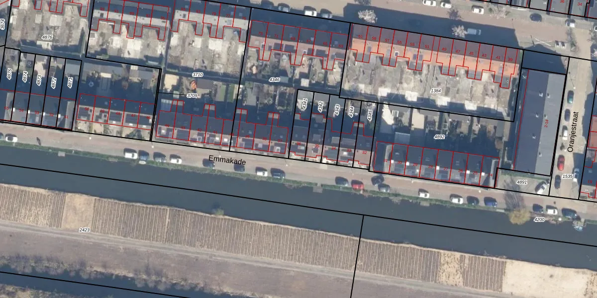 Het perceel waarop Emmakade 36 staat heeft een oppervlakte van 131 m². Dit is een middelgroot perceel. De perceeloppervlakte wordt geregistreerd door het Kadaster. Gedetailleerde informatie over de maten van dit perceel kunt u vinden in het rapport Kadastrale kaart met maatvoering van Emmakade 36.