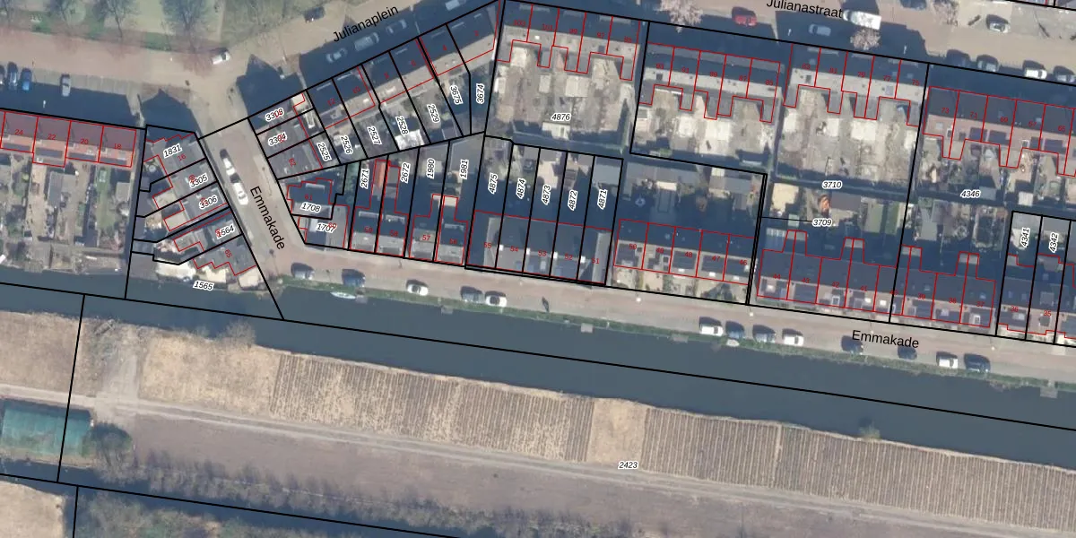Het perceel waarop Emmakade 53 staat heeft een oppervlakte van 120 m². Dit is een middelgroot perceel. De perceeloppervlakte wordt geregistreerd door het Kadaster. Gedetailleerde informatie over de maten van dit perceel kunt u vinden in het rapport Kadastrale kaart met maatvoering van Emmakade 53.