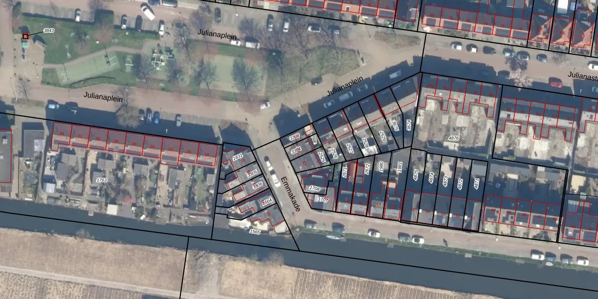 Het perceel waarop Emmakade 63 staat heeft een oppervlakte van 56 m². Dit is een klein perceel. De perceeloppervlakte wordt geregistreerd door het Kadaster. Gedetailleerde informatie over de maten van dit perceel kunt u vinden in het rapport Kadastrale kaart met maatvoering van Emmakade 63.