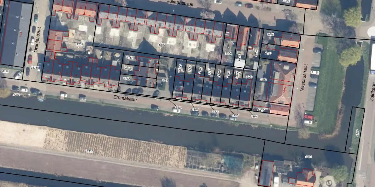 Het perceel waarop Emmakade 7 staat heeft een oppervlakte van 109 m². Dit is een middelgroot perceel. De perceeloppervlakte wordt geregistreerd door het Kadaster. Gedetailleerde informatie over de maten van dit perceel kunt u vinden in het rapport Kadastrale kaart met maatvoering van Emmakade 7.