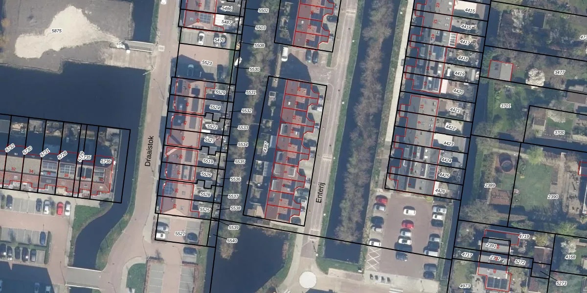 Het perceel waarop Enterij 12 staat heeft een oppervlakte van 1000 m². Dit is een zeer groot perceel. De perceeloppervlakte wordt geregistreerd door het Kadaster. Gedetailleerde informatie over de maten van dit perceel kunt u vinden in het rapport Kadastrale kaart met maatvoering van Enterij 12.