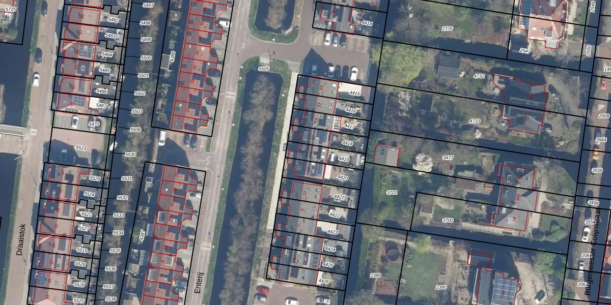 Gebruik de zoekbalk of klik op een perceel voor informatie over de adressen binnen dit perceel.