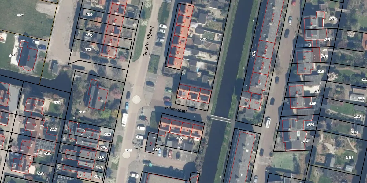 Ericastraat 2 is gelegen op kadastraal perceel BKP00B4620. Deze kadastrale aanduiding is uniek en wordt gebruikt door het Kadaster om eigendomsrechten en andere zakelijke rechten vast te leggen. Het perceel maakt onderdeel uit van de kadastrale gemeente Boskoop.
