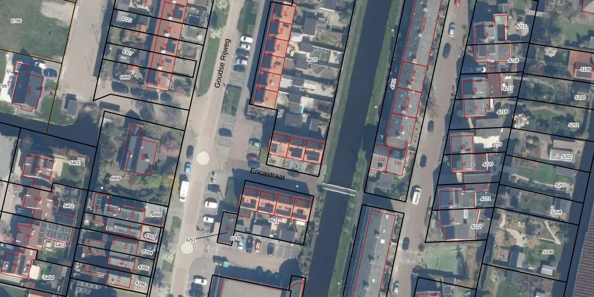 Ericastraat 4 is gelegen op kadastraal perceel BKP00B4620. Deze kadastrale aanduiding is uniek en wordt gebruikt door het Kadaster om eigendomsrechten en andere zakelijke rechten vast te leggen. Het perceel maakt onderdeel uit van de kadastrale gemeente Boskoop.
