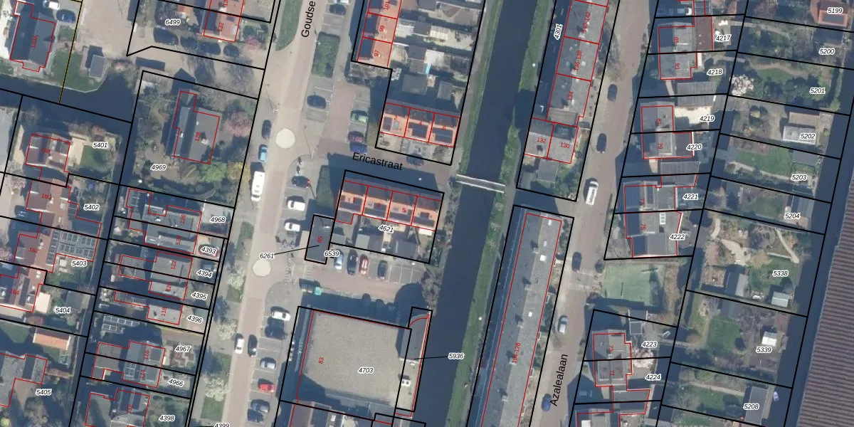 Ericastraat 7 is gelegen op kadastraal perceel BKP00B4621. Deze kadastrale aanduiding is uniek en wordt gebruikt door het Kadaster om eigendomsrechten en andere zakelijke rechten vast te leggen. Het perceel maakt onderdeel uit van de kadastrale gemeente Boskoop.