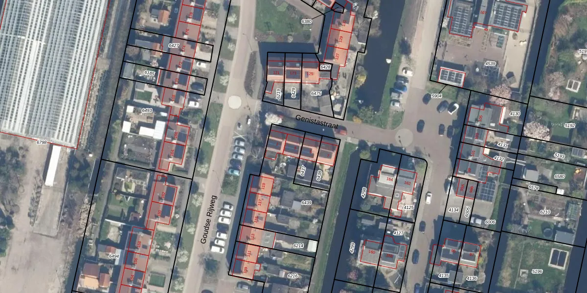 Genistastraat 3 is gelegen op kadastraal perceel BKP00B6439. Deze kadastrale aanduiding is uniek en wordt gebruikt door het Kadaster om eigendomsrechten en andere zakelijke rechten vast te leggen. Het perceel maakt onderdeel uit van de kadastrale gemeente Boskoop.