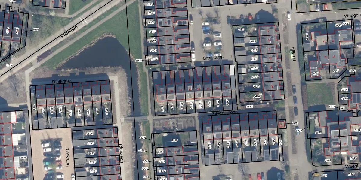 Gebruik de zoekbalk of klik op een perceel voor informatie over de adressen binnen dit perceel.
