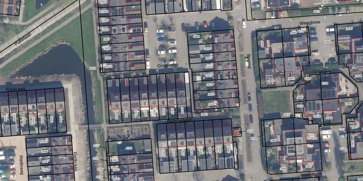 Gebruik de zoekbalk of klik op een perceel voor informatie over de adressen binnen dit perceel.