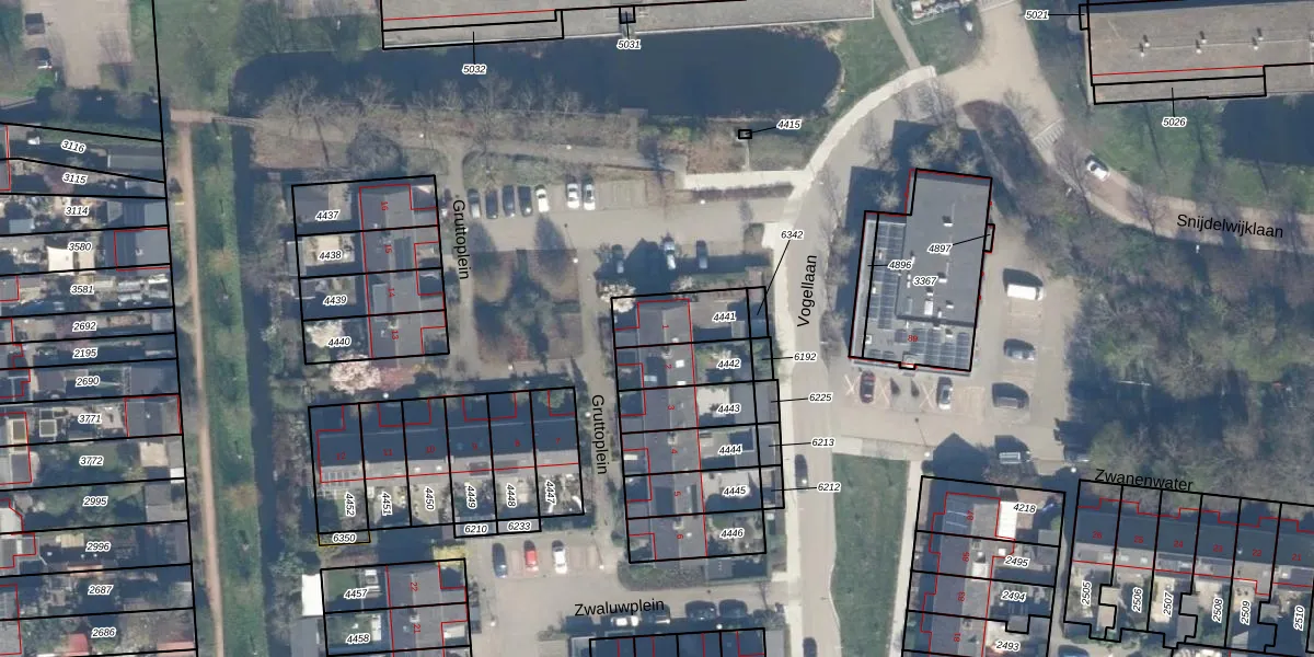 Gebruik de zoekbalk of klik op een perceel voor informatie over de adressen binnen dit perceel.