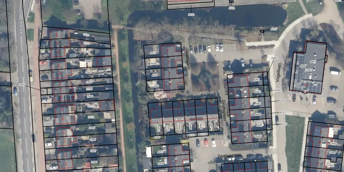 Gruttoplein 13 is gelegen op kadastraal perceel BKP00D4440. Deze kadastrale aanduiding is uniek en wordt gebruikt door het Kadaster om eigendomsrechten en andere zakelijke rechten vast te leggen. Het perceel maakt onderdeel uit van de kadastrale gemeente Boskoop.