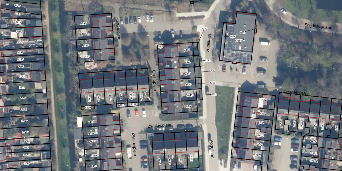 Gruttoplein 4 is gelegen op kadastraal perceel BKP00D4444. Deze kadastrale aanduiding is uniek en wordt gebruikt door het Kadaster om eigendomsrechten en andere zakelijke rechten vast te leggen. Het perceel maakt onderdeel uit van de kadastrale gemeente Boskoop.