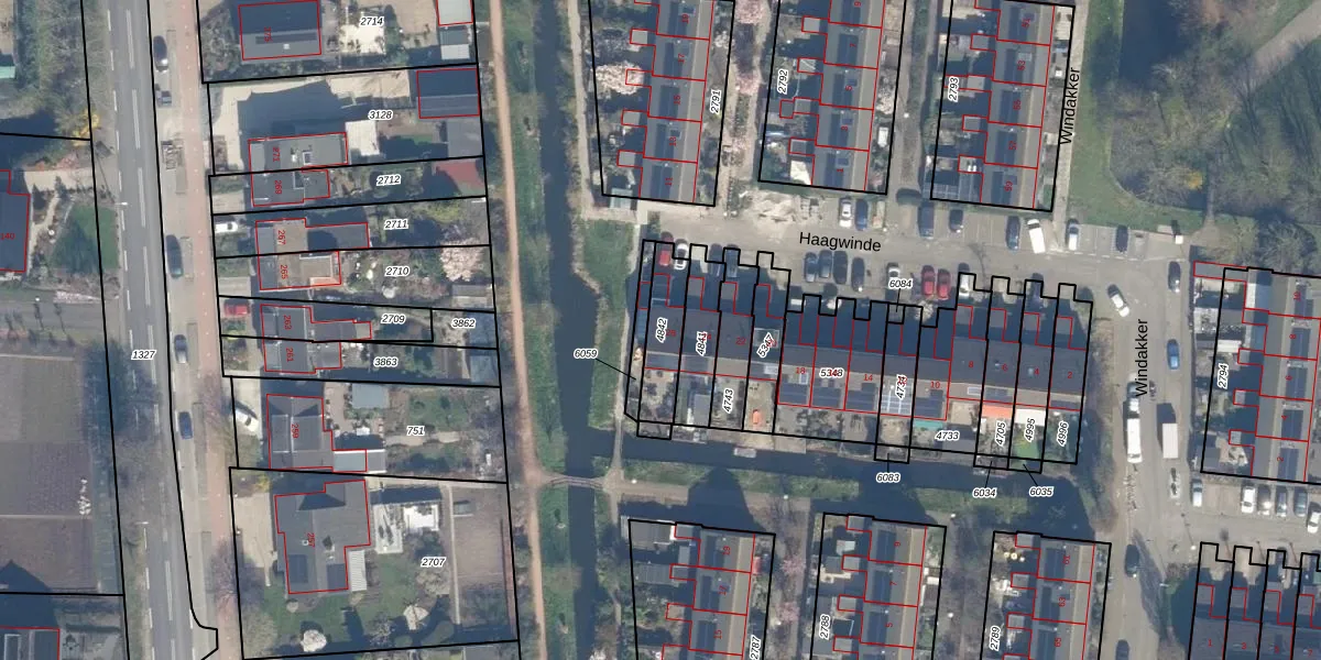 Gebruik de zoekbalk of klik op een perceel voor informatie over de adressen binnen dit perceel.