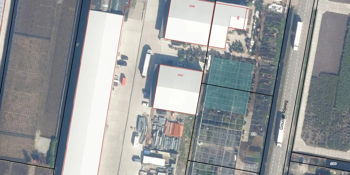 Het perceel waarop het adres ligt is BKP00-K-1409. De afkorting 'BKP00' staat voor kadastrale gemeente Boskoop. Het perceel is met 2,3 ha relatief groot. Het gemiddelde ligt in de kadastrale gemeente Boskoop op 1879,36 m². Het grootste perceel in de kadastrale gemeente is 20,7 ha. Het kleinste perceel heeft een oppervlakte van 0 m². Op het perceel liggen in totaal 16 adressen. De huidige grenzen van het perceel zijn digitaal in de Basisregistratie Kadaster (BRK) geregistreerd op 07-04-2025.