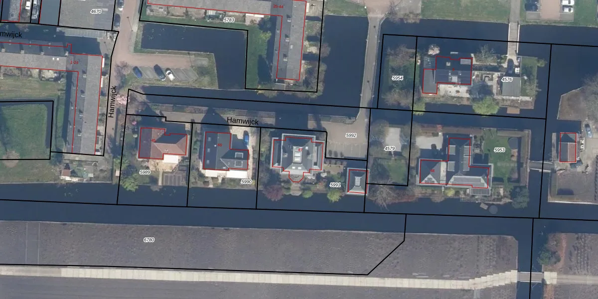 Het perceel waarop Hamwijck 47 staat heeft een oppervlakte van 805 m². Dit is een groot perceel. De perceeloppervlakte wordt geregistreerd door het Kadaster. Gedetailleerde informatie over de maten van dit perceel kunt u vinden in het rapport Kadastrale kaart met maatvoering van Hamwijck 47.