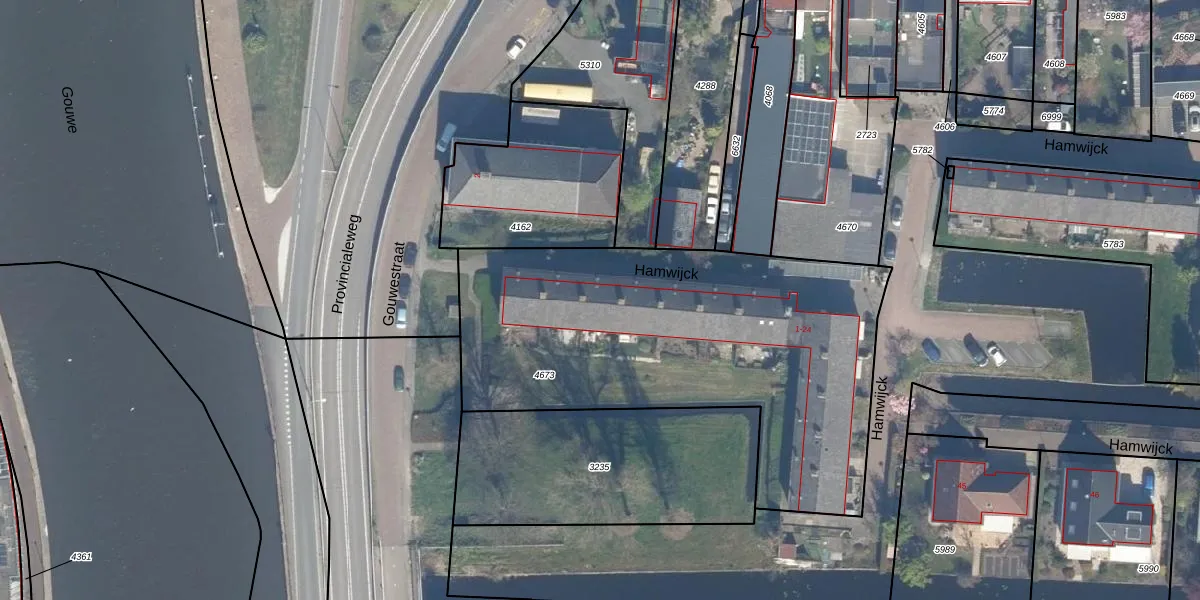 Het perceel waarop Hamwijck 5 staat heeft een oppervlakte van 2055 m². Dit is een zeer groot perceel. De perceeloppervlakte wordt geregistreerd door het Kadaster. Gedetailleerde informatie over de maten van dit perceel kunt u vinden in het rapport Kadastrale kaart met maatvoering van Hamwijck 5.