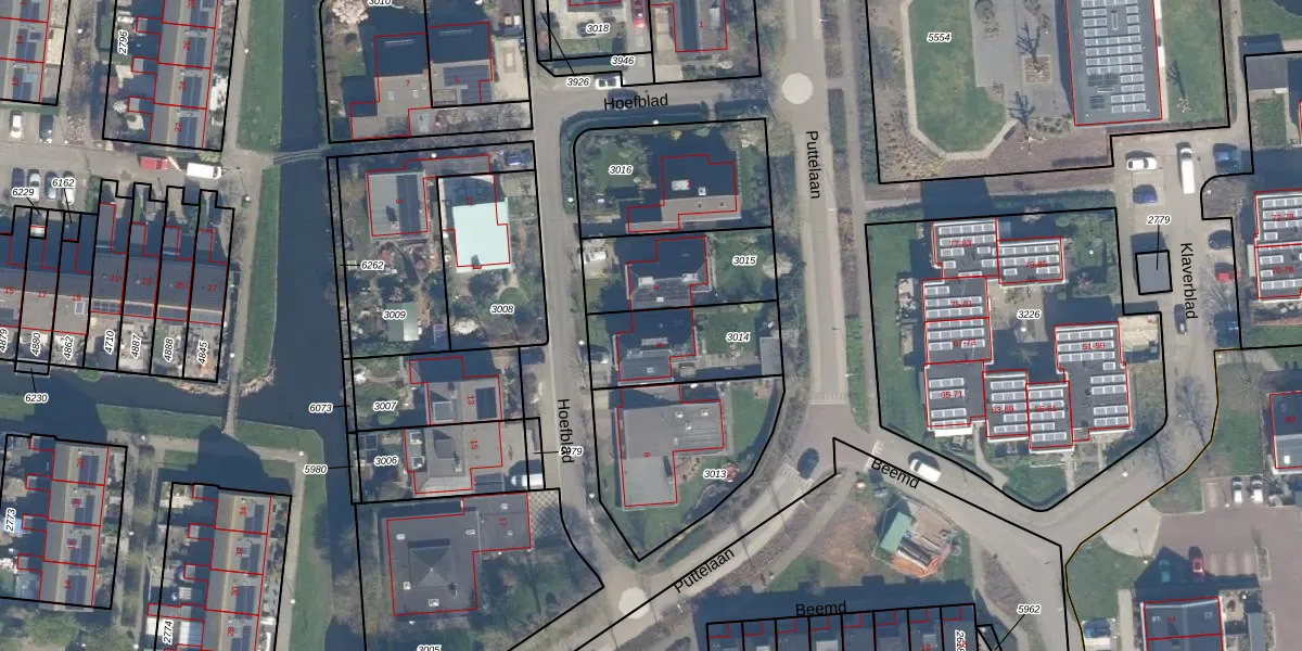 Gebruik de zoekbalk of klik op een perceel voor informatie over de adressen binnen dit perceel.