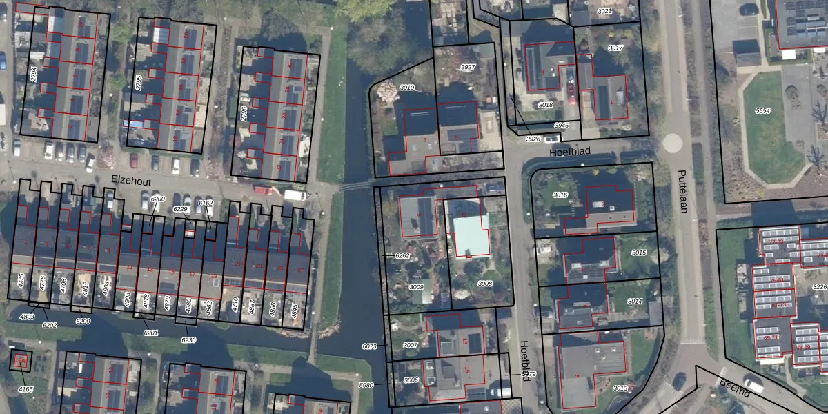 Gebruik de zoekbalk of klik op een perceel voor informatie over de adressen binnen dit perceel.