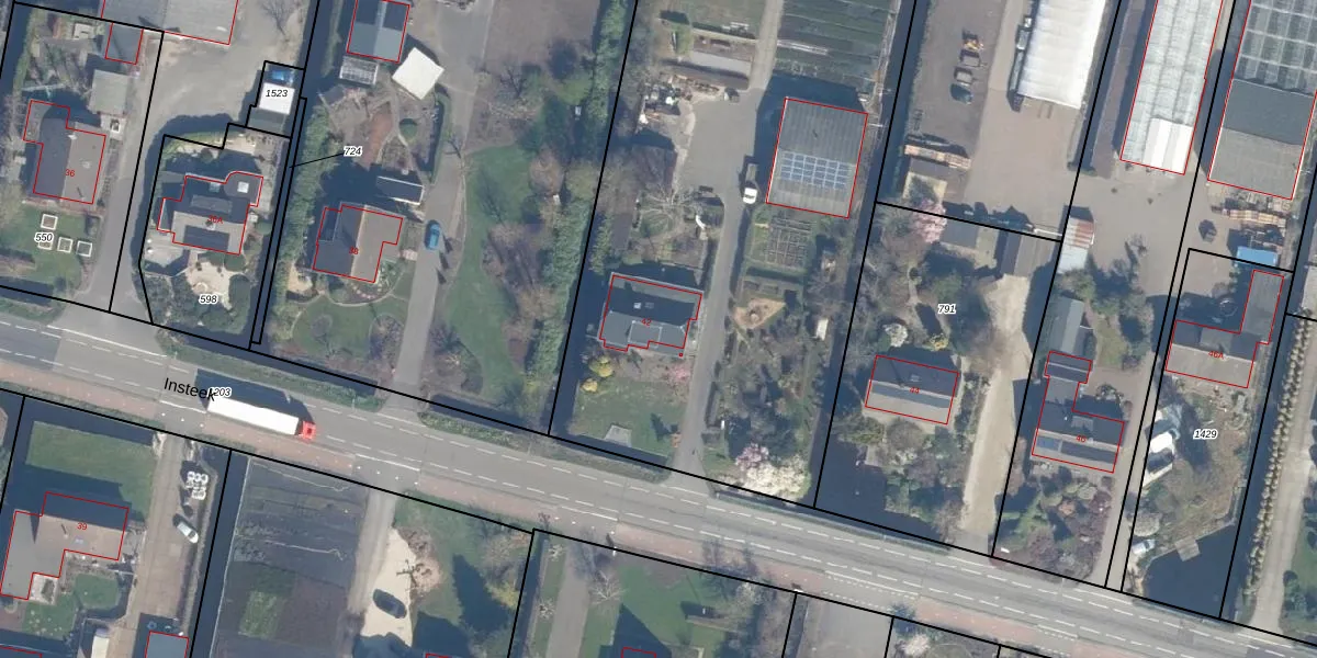 Het perceel waarop Insteek 42 staat heeft een oppervlakte van 1,1 ha. Dit is een zeer groot perceel. De perceeloppervlakte wordt geregistreerd door het Kadaster. Gedetailleerde informatie over de maten van dit perceel kunt u vinden in het rapport Kadastrale kaart met maatvoering van Insteek 42.
