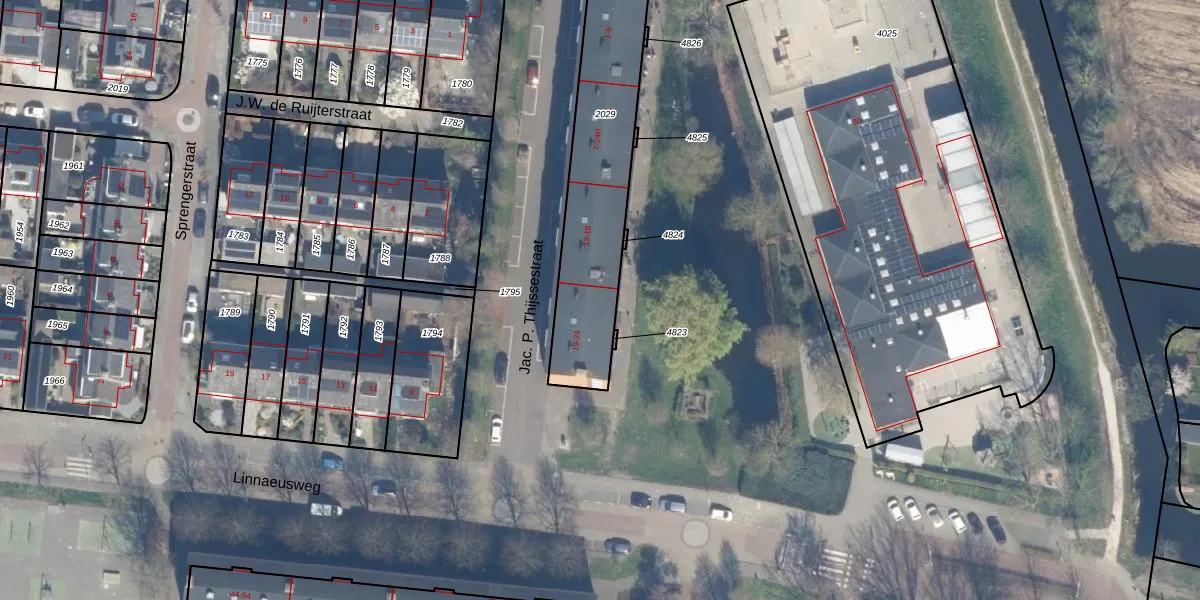Het perceel waarop Jac. P. Thijssestraat 21 staat heeft een oppervlakte van 695 m². Dit is een groot perceel. De perceeloppervlakte wordt geregistreerd door het Kadaster. Gedetailleerde informatie over de maten van dit perceel kunt u vinden in het rapport Kadastrale kaart met maatvoering van Jac. P. Thijssestraat 21.