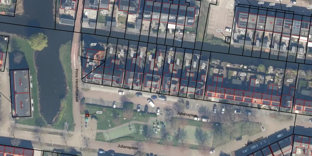Het perceel waarop Julianaplein 21 staat heeft een oppervlakte van 180 m². Dit is een middelgroot perceel. De perceeloppervlakte wordt geregistreerd door het Kadaster. Gedetailleerde informatie over de maten van dit perceel kunt u vinden in het rapport Kadastrale kaart met maatvoering van Julianaplein 21.