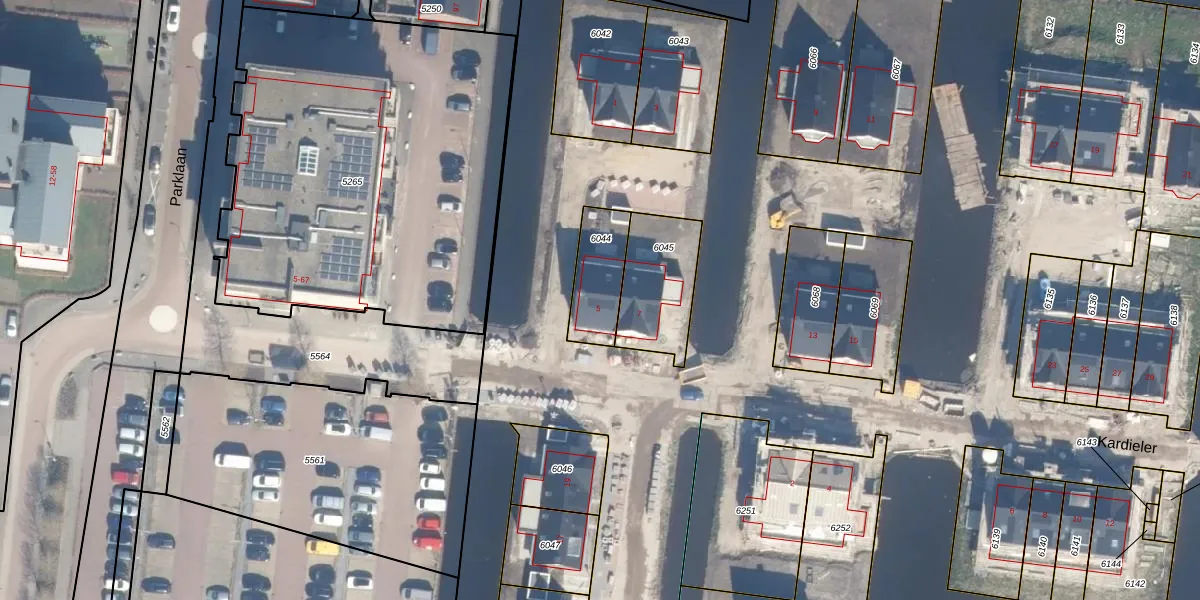 Kardieler 5 is gelegen op kadastraal perceel BKP00A6044. Deze kadastrale aanduiding is uniek en wordt gebruikt door het Kadaster om eigendomsrechten en andere zakelijke rechten vast te leggen. Het perceel maakt onderdeel uit van de kadastrale gemeente Boskoop.
