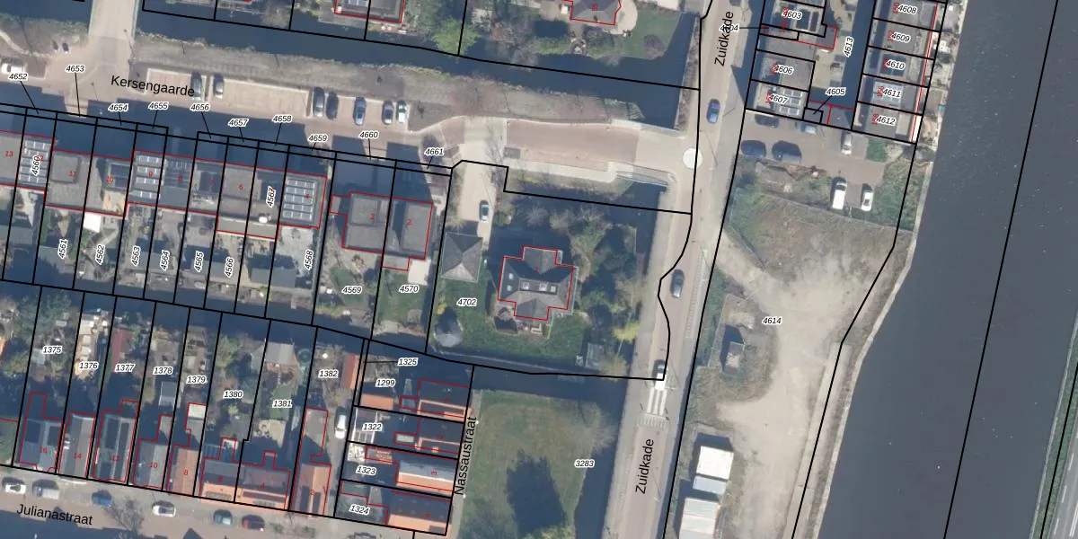 Kersengaarde 1 is gelegen op kadastraal perceel BKP00D4702. Deze kadastrale aanduiding is uniek en wordt gebruikt door het Kadaster om eigendomsrechten en andere zakelijke rechten vast te leggen. Het perceel maakt onderdeel uit van de kadastrale gemeente Boskoop.
