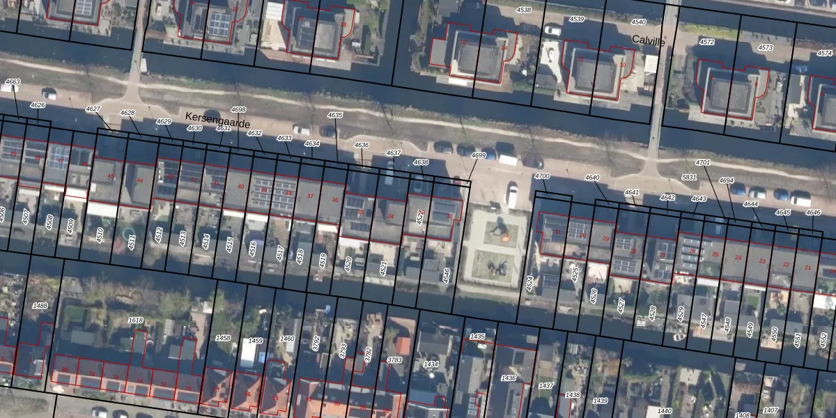 Het perceel waarop Kersengaarde 33 staat heeft een oppervlakte van 173 m². Dit is een middelgroot perceel. De perceeloppervlakte wordt geregistreerd door het Kadaster. Gedetailleerde informatie over de maten van dit perceel kunt u vinden in het rapport Kadastrale kaart met maatvoering van Kersengaarde 33.
