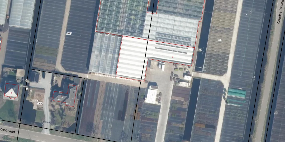 Koetsveld 3 is gelegen op kadastraal perceel BKP00K1367. Deze kadastrale aanduiding is uniek en wordt gebruikt door het Kadaster om eigendomsrechten en andere zakelijke rechten vast te leggen. Het perceel maakt onderdeel uit van de kadastrale gemeente Boskoop.